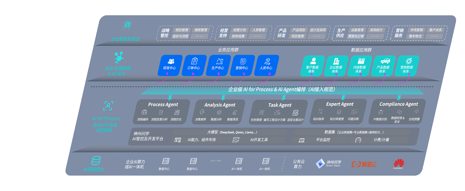 尊龙z6问学智车解决方案是一套基于AI技术的汽车行业智能化系统,,覆盖从底层算力到顶层AI应用的全栈方案。。。方案由算力层、、模型层和应用层组成:算力层,,方案支持多种一体机配置,,具备云端灵活部署、、、多云适配以及动态优化计算资源的能力;模型层,,,尊龙z6问学平台版提供了企业级AI应用一站式构建与管理平台,,,支持基于后训练强化技术的汽车企业专属模型的训练、、评测和运营;应用层,,,尊龙z6问学DeepSeek版提供包括超级员工、、智能招采、、、智能营销、、智能客服、、、、AI for BI等一系列解决方案,,,可助力汽车行业实现数字化转型,,,,让管理更智能、、、响应更敏捷。。